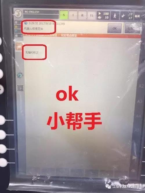 step 1:T1模式,無選擇程序,程序啟動鍵正常,機器人各軸到達零點附近位置;