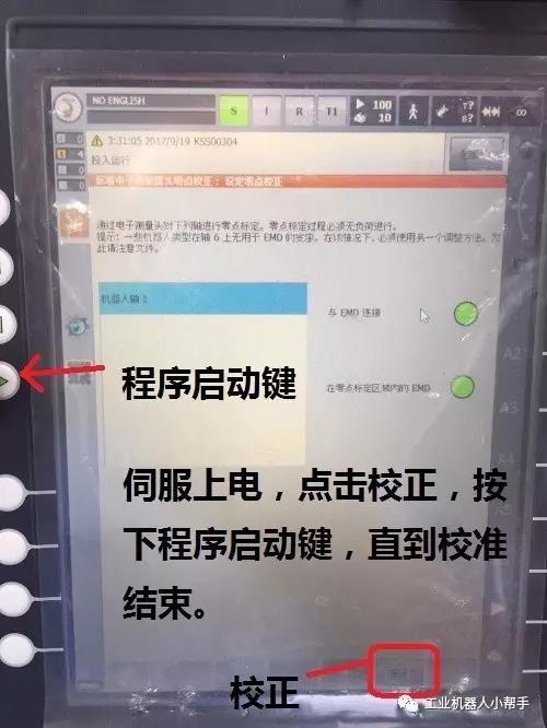 step 6:伺服上電,點擊校正,按下程序啟動鍵,直到校正完成;